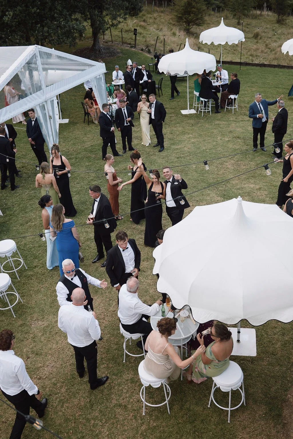 A Pavilion Marquee works beautifully as a cocktail hour space, a reception venue, or even a sheltered ceremony setting. Pair it with our parasols on the lawn for pre-drinks, and guests can move freely between sheltered and open-air spaces throughout the day — with the marquee as the anchor everyone gravitates back to.