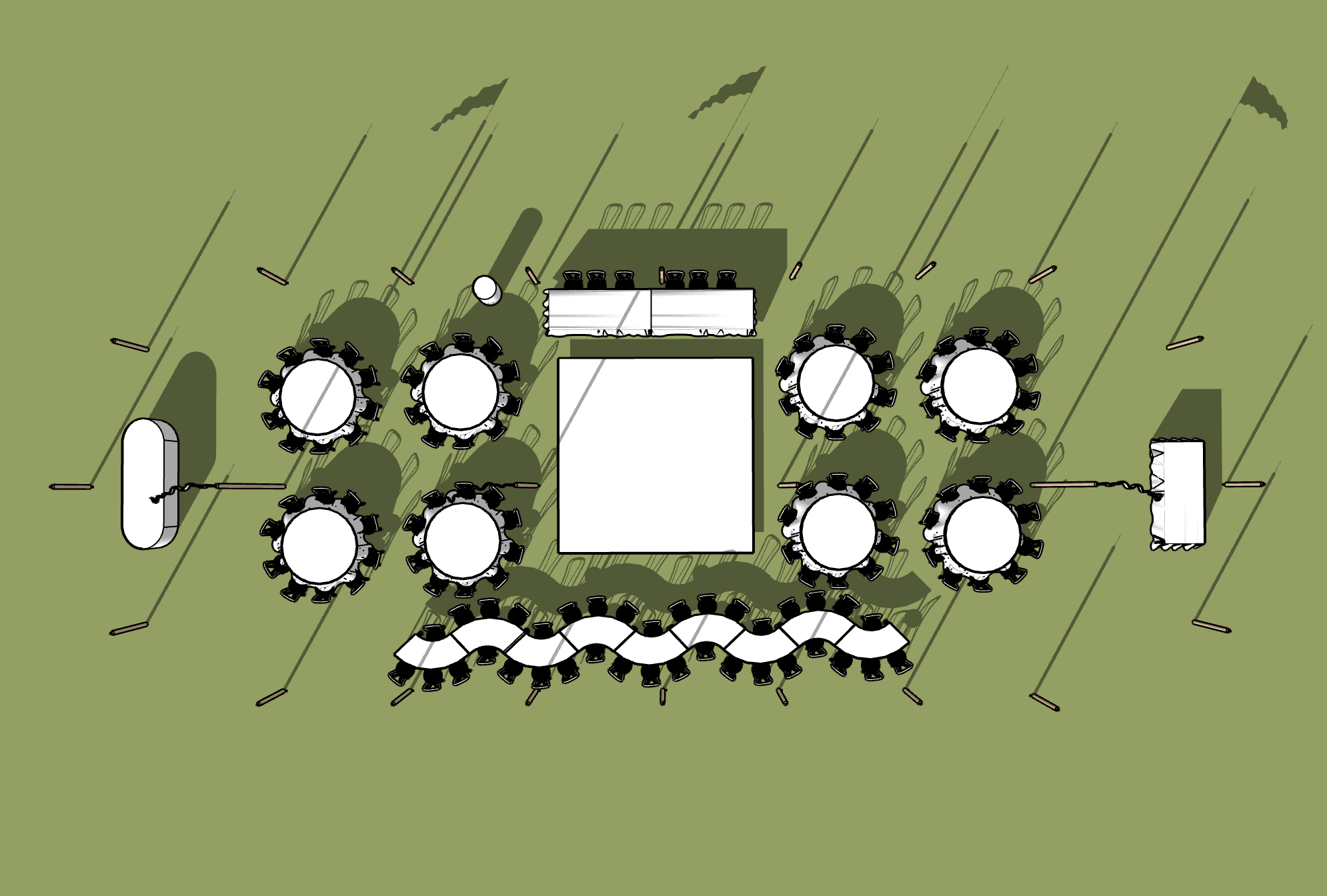 Our modern, serpentine tables are a statement for any dining experience. Our Serpentine tables are designed to piece together in various layouts that will suit your event.